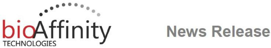 bioAffinity Technologies, Inc. addresses the need for noninvasive diagnosis of early-stage cancer and diseases of the lung, and targeted cancer treatment. The Company’s first product, CyPath® Lung, is a noninvasive test that has shown high sensitivity and specificity for the detection of early-stage lung cancer. CyPath® Lung is marketed as a Laboratory Developed Test (LDT) by Precision Pathology Services. OncoSelect Therapeutics, LLC, a subsidiary of bioAffinity Technologies, is advancing its discoveries shown in vitro to kill cancer cells without harm to normal cells. Research and optimization of the Company’s platform technologies are conducted in its laboratories at The University of Texas at San Antonio.