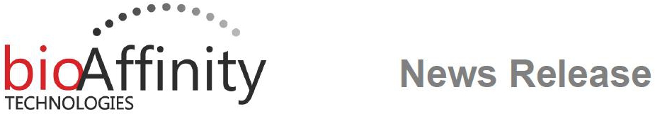 bioAffinity Technologies, Inc. addresses the need for noninvasive diagnosis of early-stage cancer and other diseases of the lung and broad-spectrum cancer treatments. The Company’s first product, CyPath® Lung, is a noninvasive test that has shown high sensitivity, specificity and accuracy for the detection of early-stage lung cancer. CyPath® Lung is marketed as a Laboratory Developed Test (LDT) by Precision Pathology Laboratory Services, a subsidiary of bioAffinity Technologies. For more information, visit www.bioaffinitytech.com.