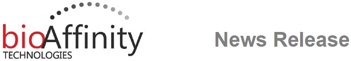 bioAffinity Technologies, Inc. addresses the need for noninvasive diagnosis of early-stage cancer and other diseases of the lung and broad-spectrum cancer treatments. The Company’s first product, CyPath® Lung, is a noninvasive test that has shown high sensitivity, specificity and accuracy for the detection of early-stage lung cancer. CyPath® Lung is marketed as a Laboratory Developed Test (LDT) by Precision Pathology Laboratory Services, a subsidiary of bioAffinity Technologies. For more information, visit www.bioaffinitytech.com.